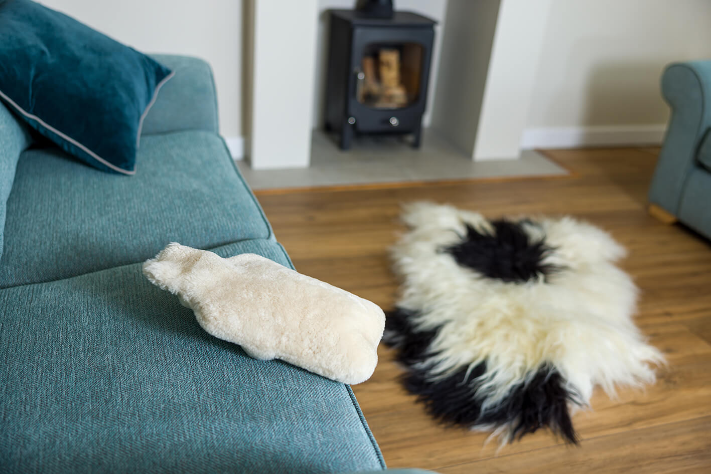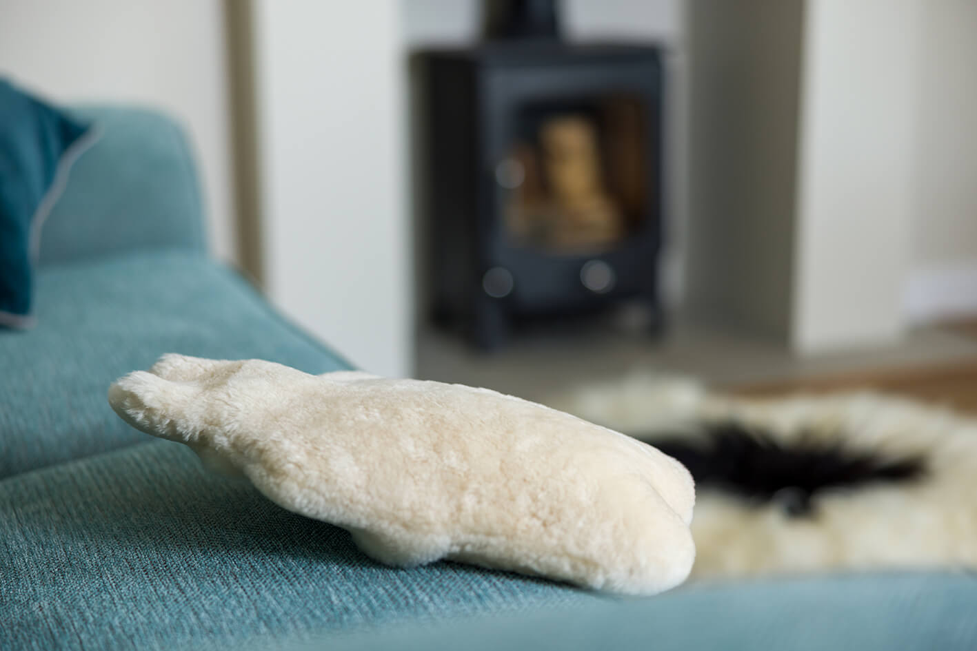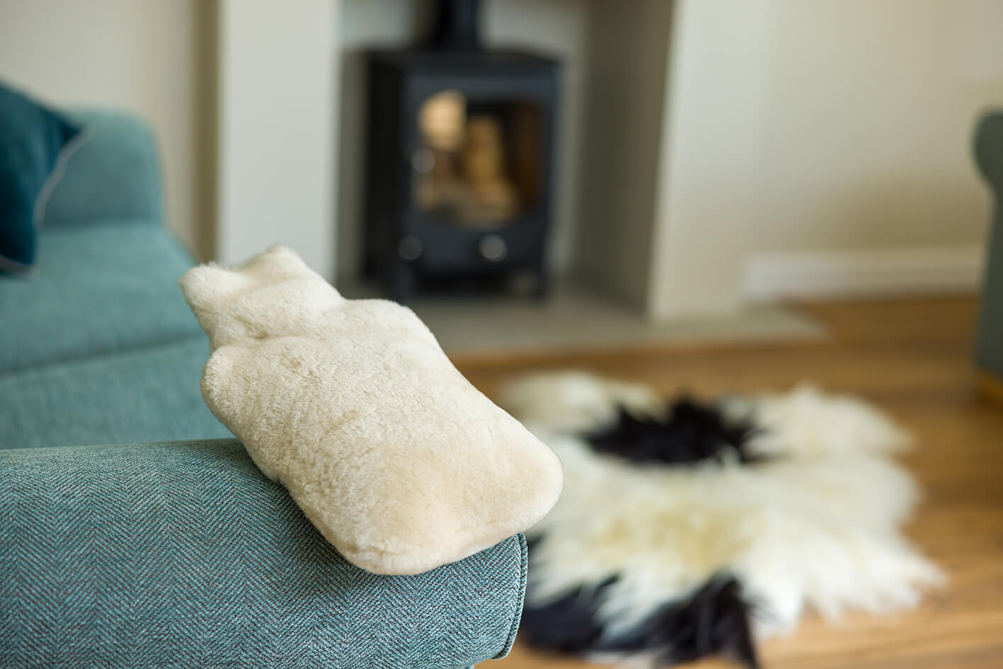 Our real sheepskin hot water bottle cover. Made from 100% premium soft sheepskin, this sumptuous hot water bottle cover will certainly keep you warm on the coldest days. This is the most luxurious hot water bottle cover available.