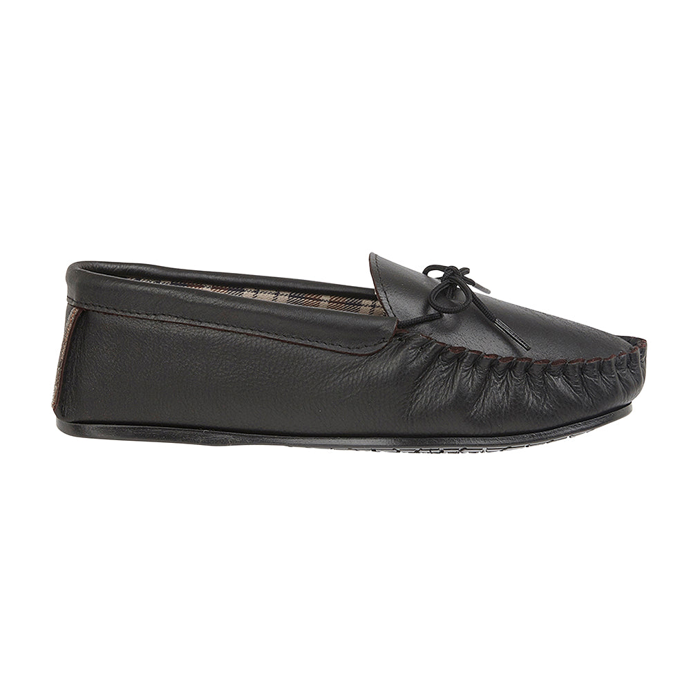 A very soft, milled leather men's moccasin slipper. With an attractive tartan fabric lining its an ideal slipper for year-round use. It has adjustable matching lace. Featuring a flexible rubber sole which is extremely durable for indoor and outdoor use. Made in England.