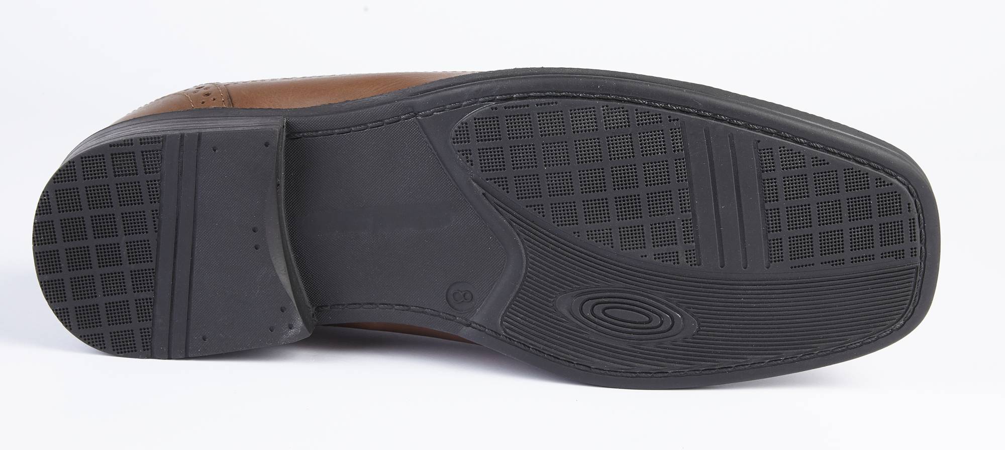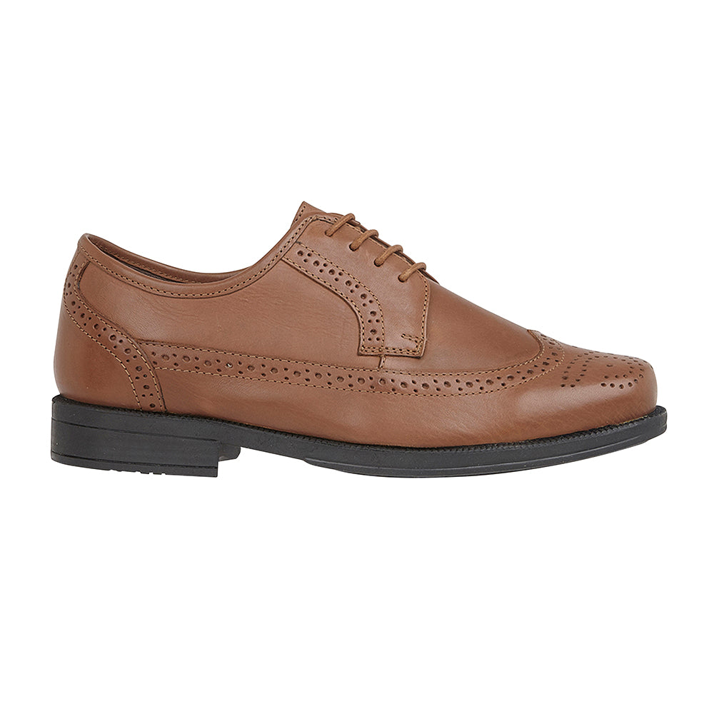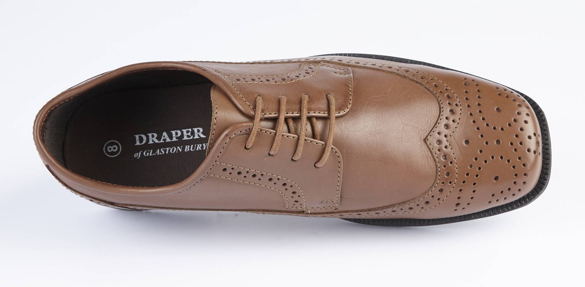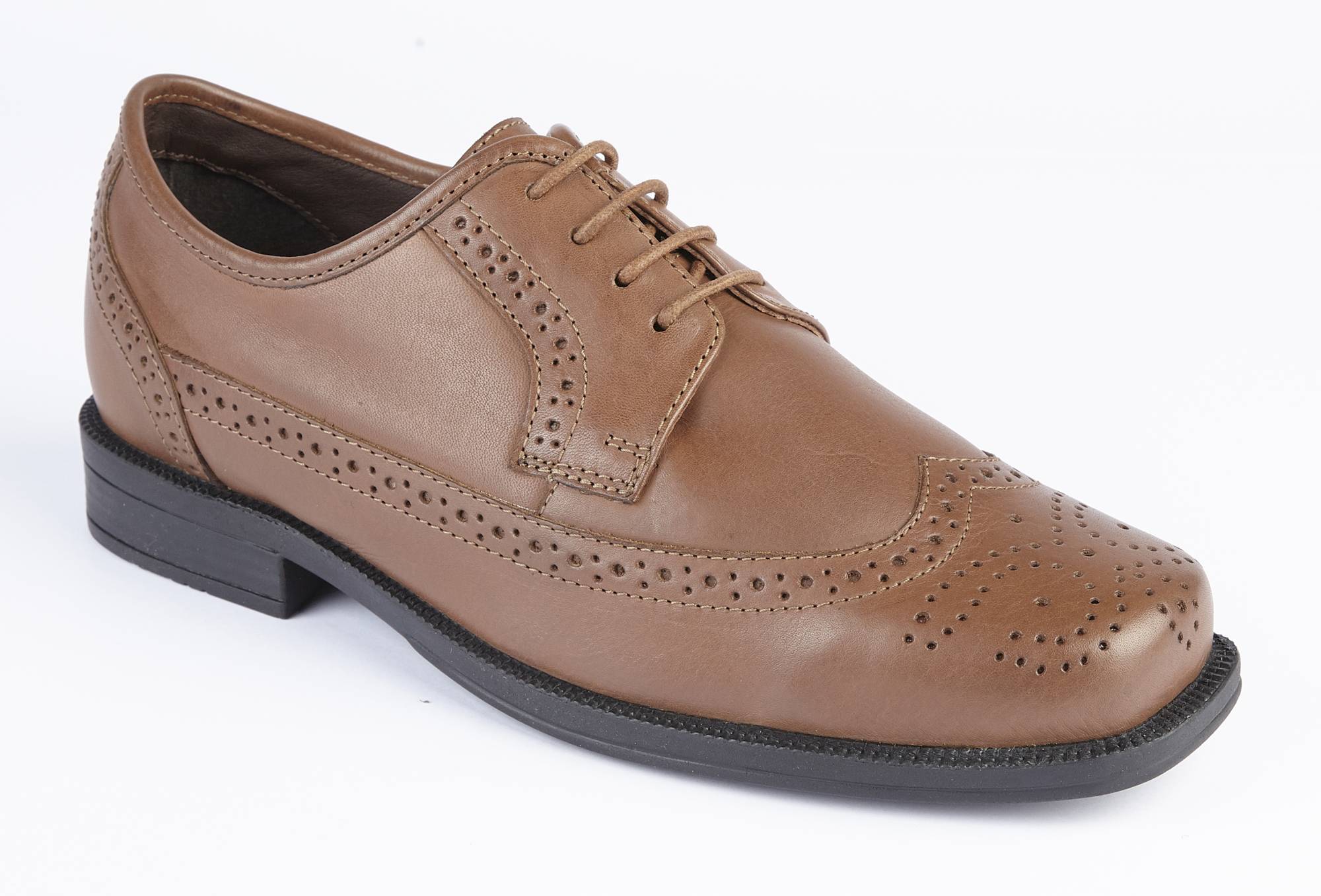 An oxford brogue, with a genuine soft leather upper, soft leather lining and cushioned leather insole. It has plenty of room at the toe area, and a rubber sole with a one inch heel. It is an H fitting shoe (wider than regular)