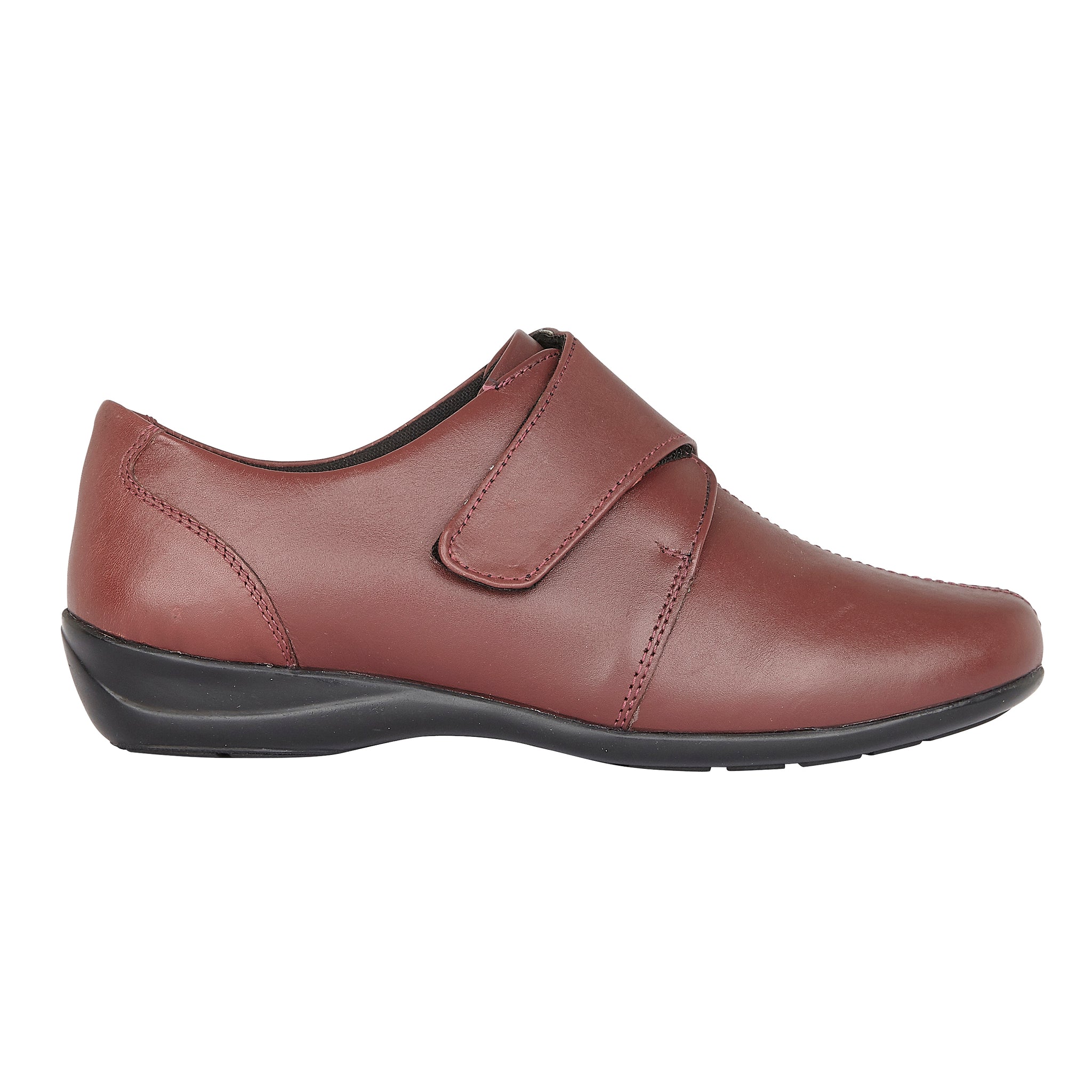 A high quality ladies shoe. Made with a waterproof leather upper, leather insole, and hard wearing sole. Velcro fastening. E Fitting (wide).