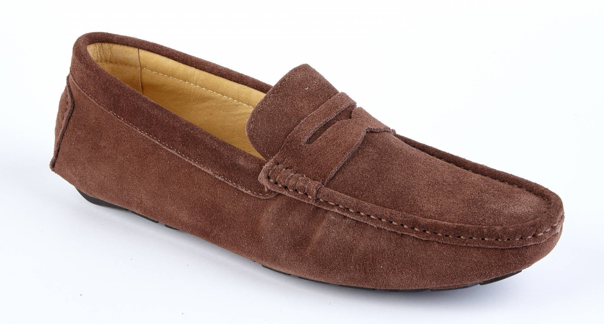 Our chocolate suede loafers, made with the finest quality, soft suede upper, leather lining throughout, and flexible rubber sole. They are the ideal shoe for both smart and casual wear, and the slip on/off design makes them easy to wear. They are a standard G width fitting but are slightly wider rather than narrow which makes for comfortable wear. They are lightweight and durable too.